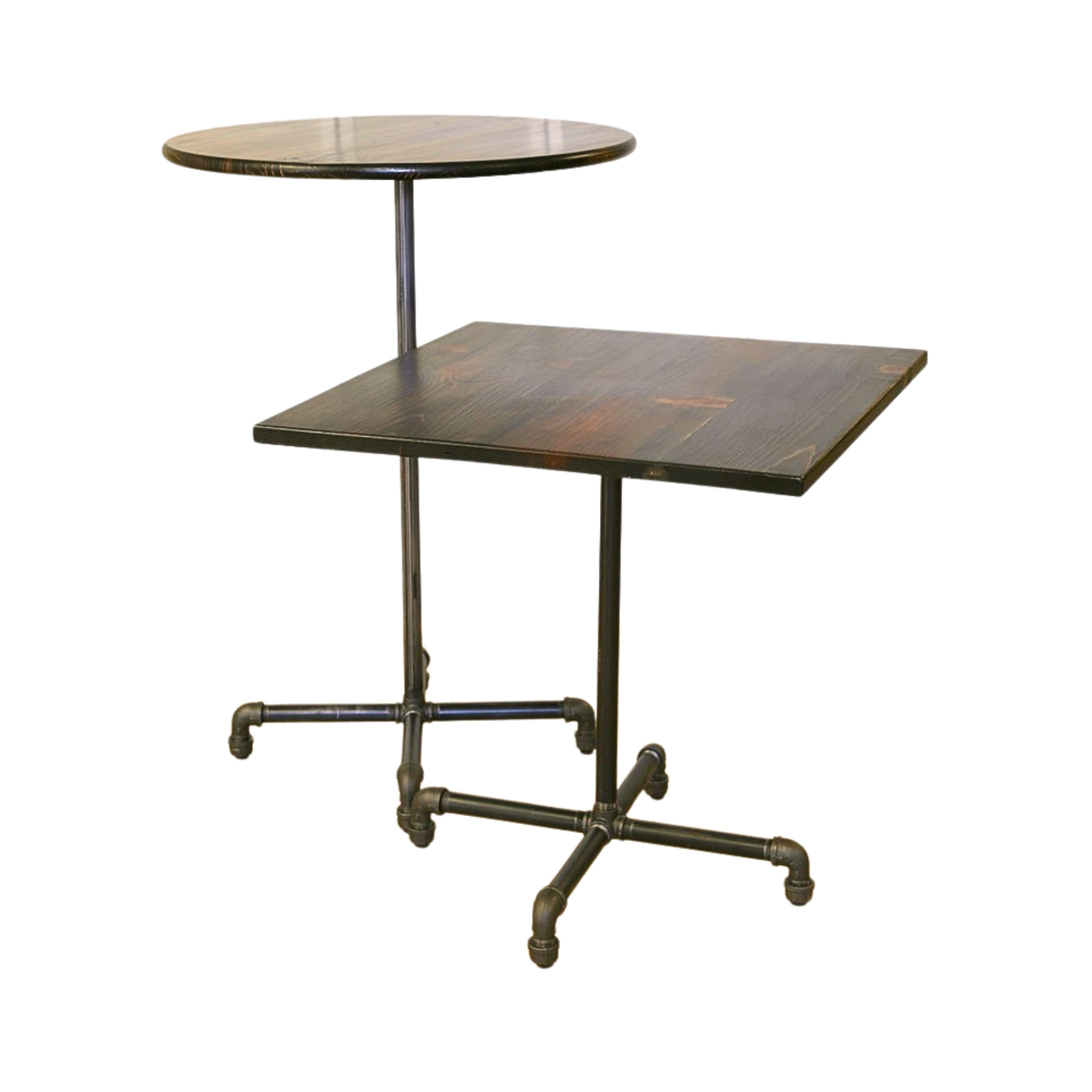 Edison high top pedestal tables are available with a square or round finished top. They can be used with either a 30″ height base for seated events or a 42″ height base for standing events. There is no need for linen as these tables are meant to be shown off. Perfect for any event with a rustic, antique, Victorian or industrial theme or decor.